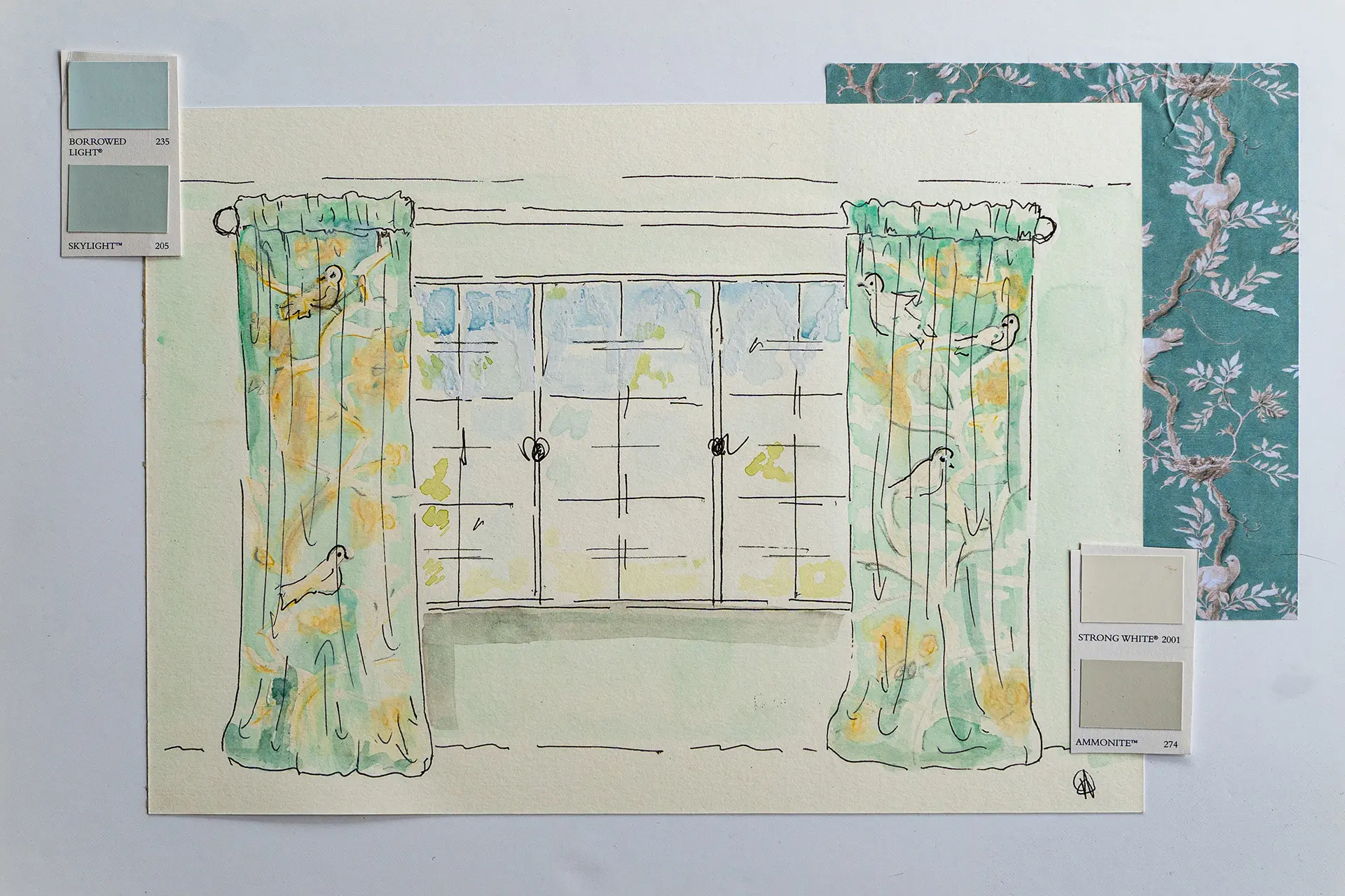From the initial consultation to the final installation, we work closely with you to ensure that your ideas are fully realised. Our hand-made mood boards and hand-drawn sketches allow you to see the full potential of your space in a way that is both tactile and unique, steering clear of generic computer-generated images.