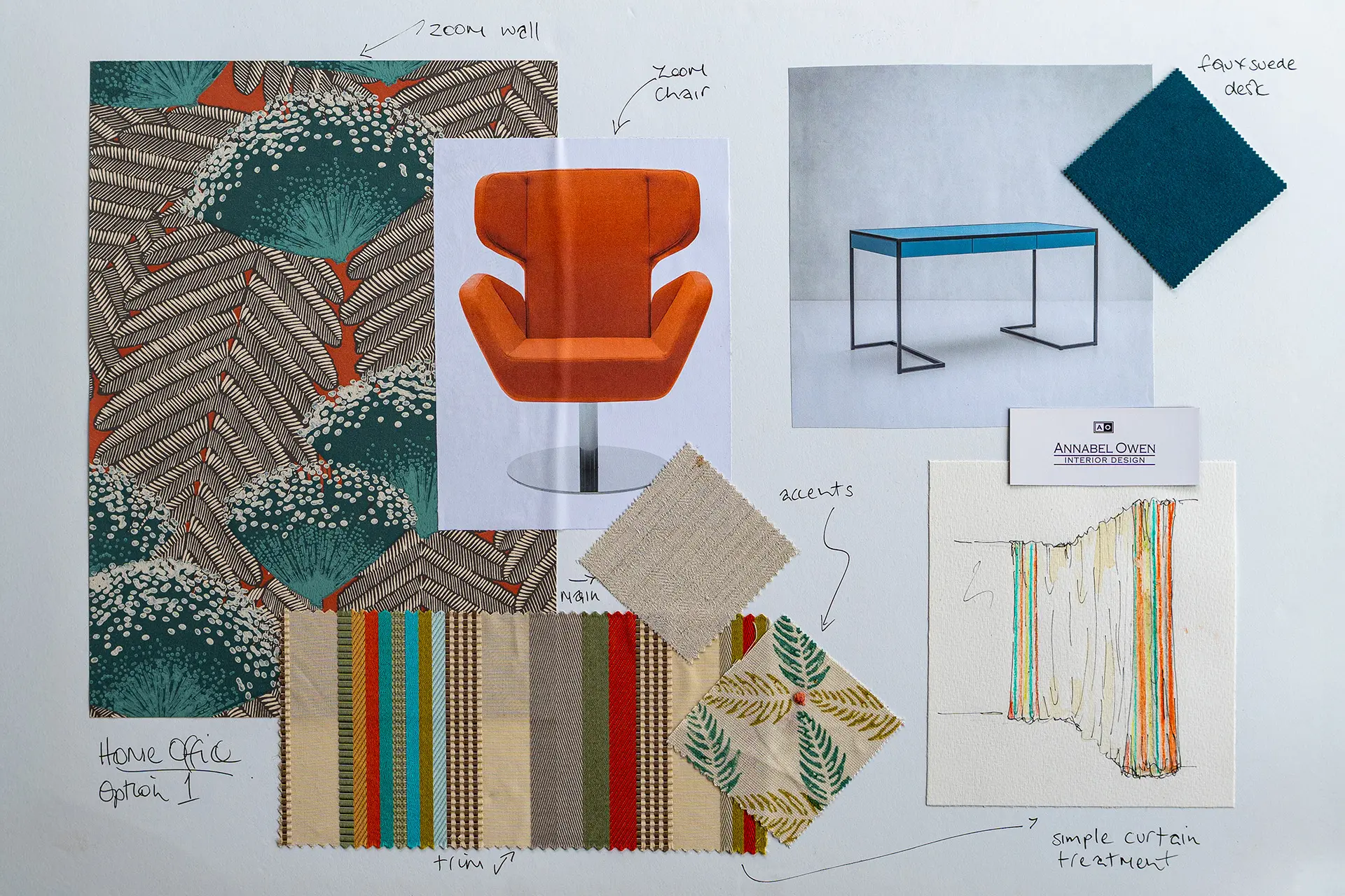 “Having decided to work much more from home I decided to use Annabel Owen Interior Design to make me a home office that felt both professional, productive and a good space for receiving colleagues when necessary. The outcome is brilliant, I feel confident having visitors and my ‘zoom’ meetings make me look very smart! The process was easy and ran very smoothly. Working from home is now an absolute pleasure.”